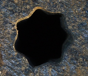 The hole went further on down into through the ground, with a 20-30 degrees downward angle. Unfortunately the hole was covered with mud, and has not yet been recovered. But according to those who saw it, it too was in the shape of a 7 edged star.